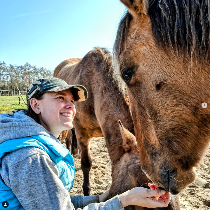Samen met mijn vrouw Alyssa, zorg ik voor onze vier paarden, waarvan drie Sorraia kruisingen en één Quarter Horse. We proberen ze in de training zo veel mogelijk variatie aan te bieden, van dressuurmatig werk (rijdend of vanaf de grond) tot cooperative care en alles er tussenin, alles op basis van R+. Met daarbij de focus op de mentale en lichamelijke gezondheid van onze paarden. Onze grootste wens is om hen, blij en gezond, tot tenminste hun 30ste bij ons te hebben.